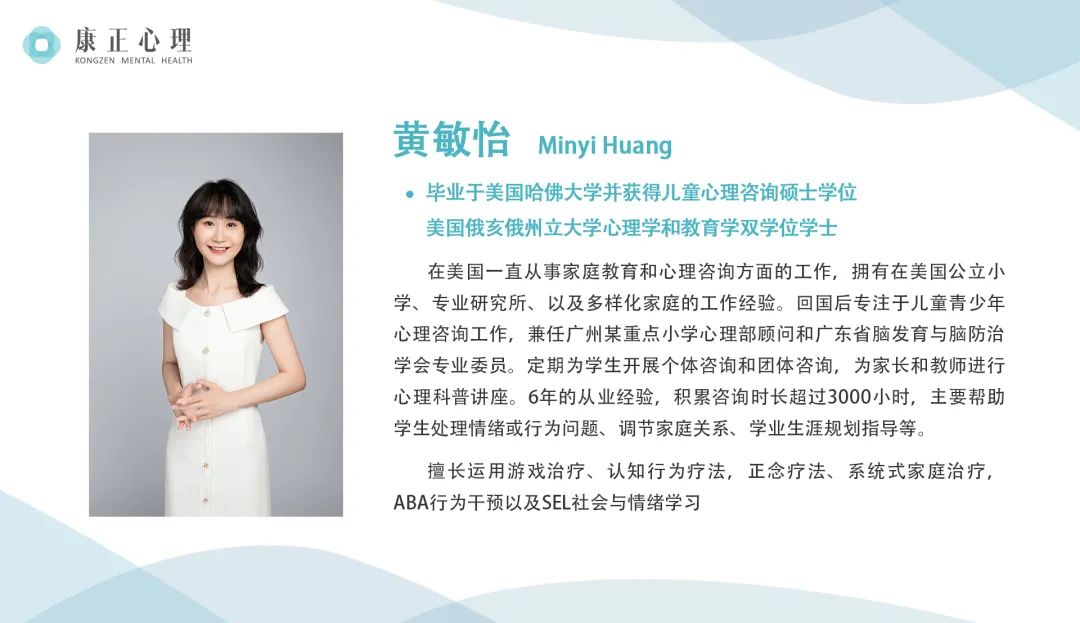 廣州康正心理健康成長中心(簡稱康正心理),秉承“回歸心理本源”的理念,專注于中國青少年兒童心理健康發展的領域,結合最前沿的腦科學和心理學研究成果,深度構建適合中國孩子的心靈成長體系,提供國際化、科學化、專業化的一站式高品質心理健康服務。