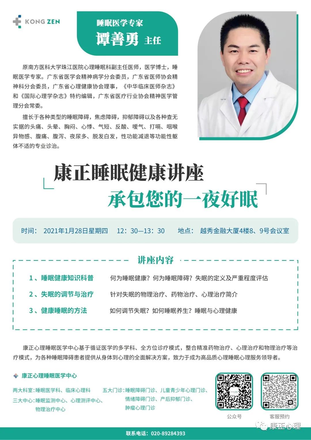 本次活動由康正睡眠心理診療中心省知名睡眠專家、精神心理科譚善勇主任,親自開展關于睡眠健康的專題公益講座,為大家講解睡眠養生的健康知識,提供關于睡眠健康的滿滿干貨。