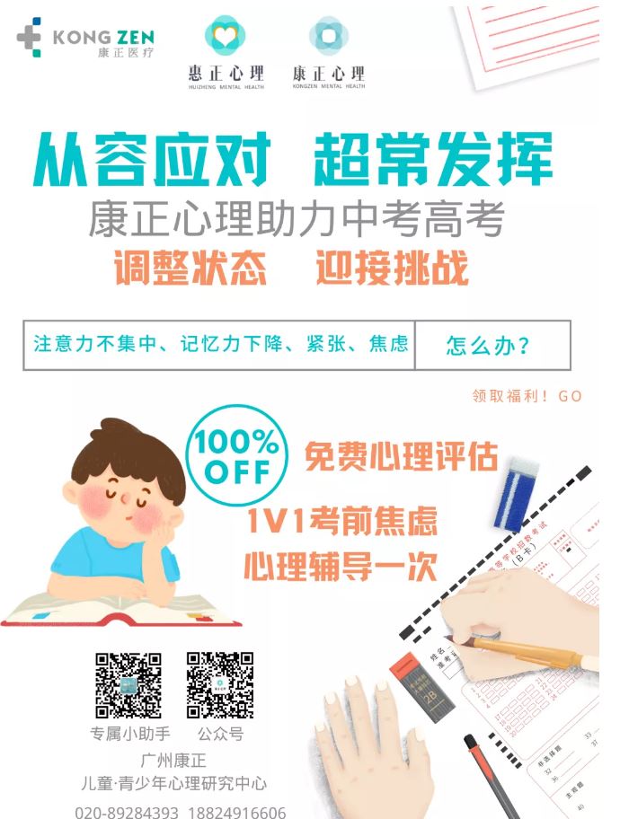 只要你是中考、高考的學生或家長,馬上聯系客服,即可免費獲得一份康正青少年心理資深心理咨詢師專業的評估和一次心理輔導