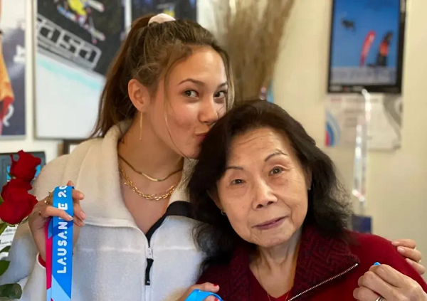 在愛凌出生后,姥姥更是一直在美國照顧她的飲食起居,而媽媽更是在愛凌的滑雪路上提供強大的后援支持。